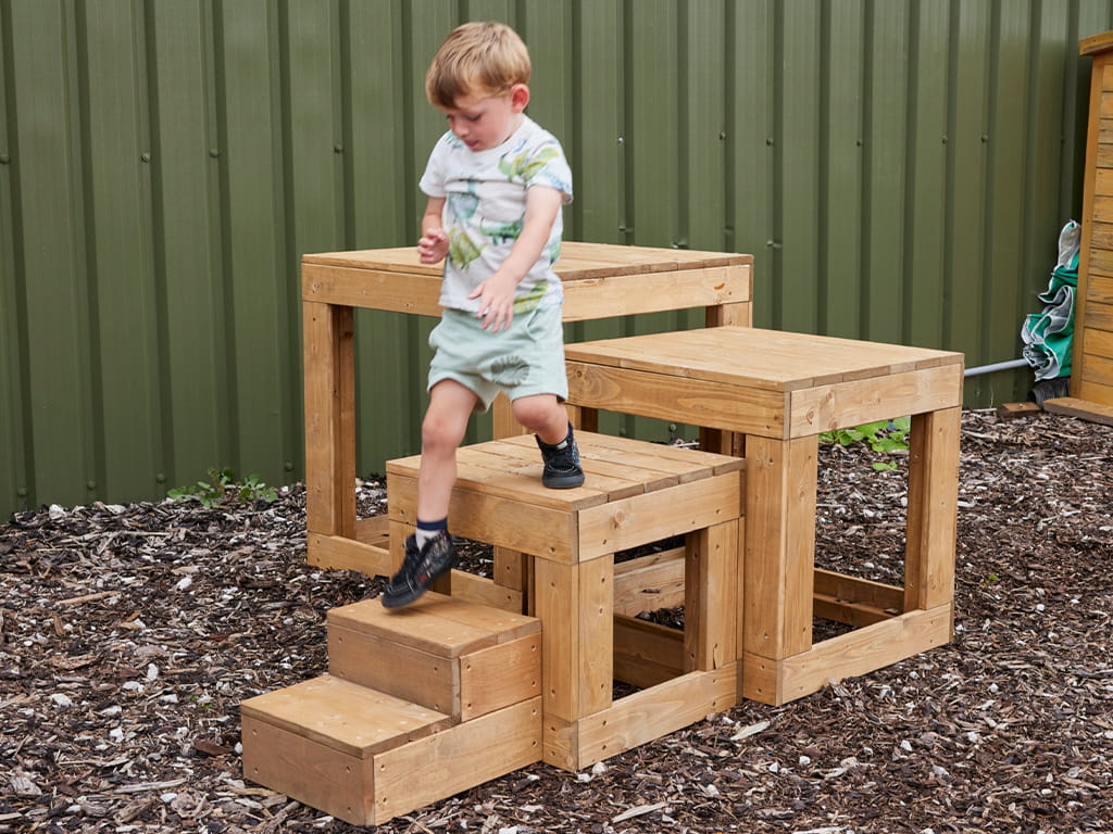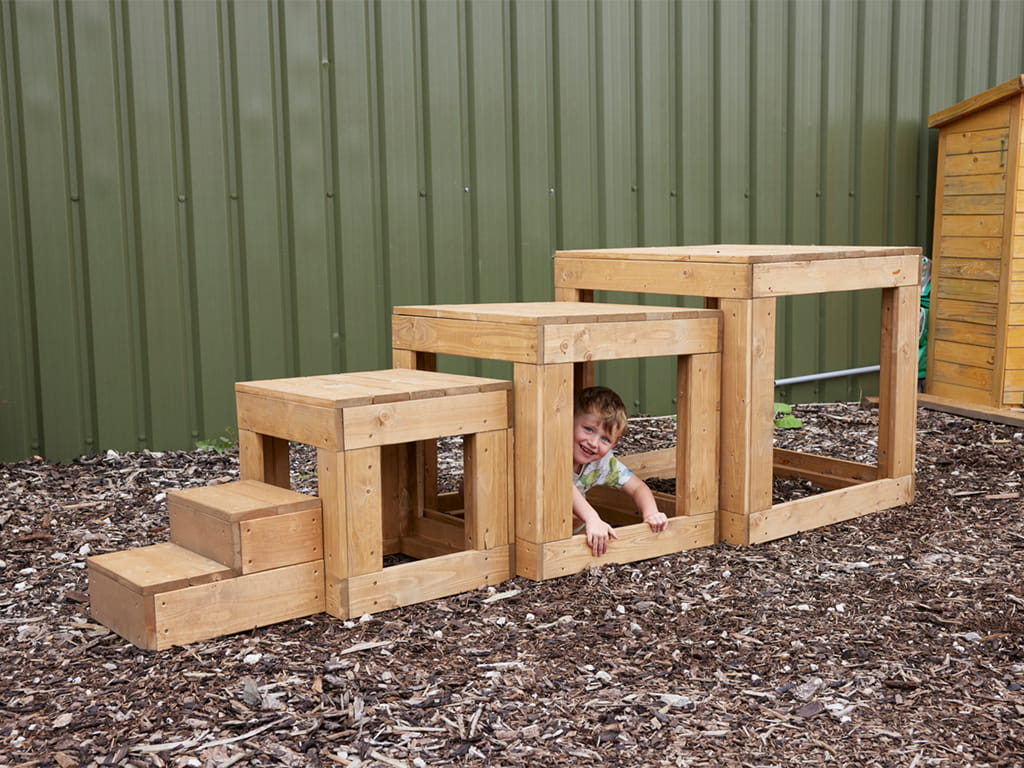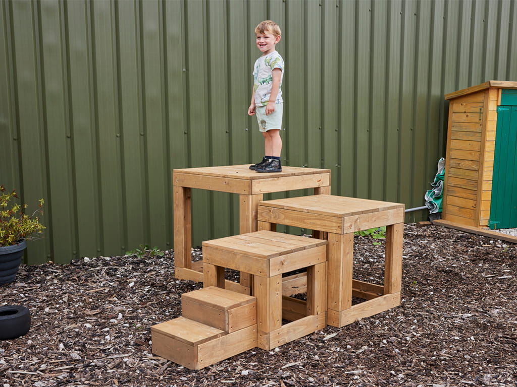 Ένα ευέλικτο προϊόν που μπορούν να χρησιμοποιήσουν τα παιδιά για να σχεδιάσουν τις δικές τους διαδρομές με εμπόδια ή να δημιουργήσουν τις δικές τους κατασκευές μεγάλης κλίμακας. Προσφέρει ατελείωτες δυνατότητες για παιχνίδι. Απαιτεί 150 εκ. χώρο πτώσης από όλες τις πλευρές. Περιλαμβάνει 3 ξύλινα πλαίσια-κύβους και ξύλινα σκαλοπάτια. Κατάλληλο για εξωτερικούς χώρους.