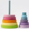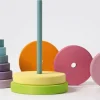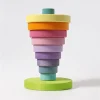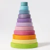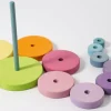 Με την ξύλινη πυραμίδα τα παιδιά μπορούν να ταξινομήσουν και να στοιβάξουν τους πολύχρωμους δίσκους και έτσι να βελτιώσουν το συντονισμό ματιού-χεριού και τη λεπτή κινητικότητα. Επίσης μπορούν να συγκρίνουν τα μεγέθη και να μάθουν τα χρώματα. Περιέχει 10 ξύλινους δίσκους σε 10 παστέλ χρώματα και 1 βάση. Από ξύλο φλαμουριάς, βαμμένοι με μη τοξικό χρώμα με βάση το νερό. Ηλικία: 1 ετών και άνω.