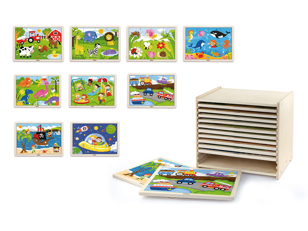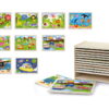 Η Ξύλινη Ραφιέρα με πάζλ είναι ένα εκπαιδευτικό και διασκεδαστικό σετ που συνδυάζει τη μάθηση με την οργάνωση. Η ραφιέρα περιλαμβάνει 12 ξύλινα παζλ των 16 τεμαχίων το καθένα, προσφέροντας στα παιδιά την ευκαιρία να αναπτύξουν τη λογική σκέψη, τη φαντασία και τη λεπτή κινητικότητα, ενώ ταυτόχρονα εξασκούν τον συντονισμό χεριού-ματιού.