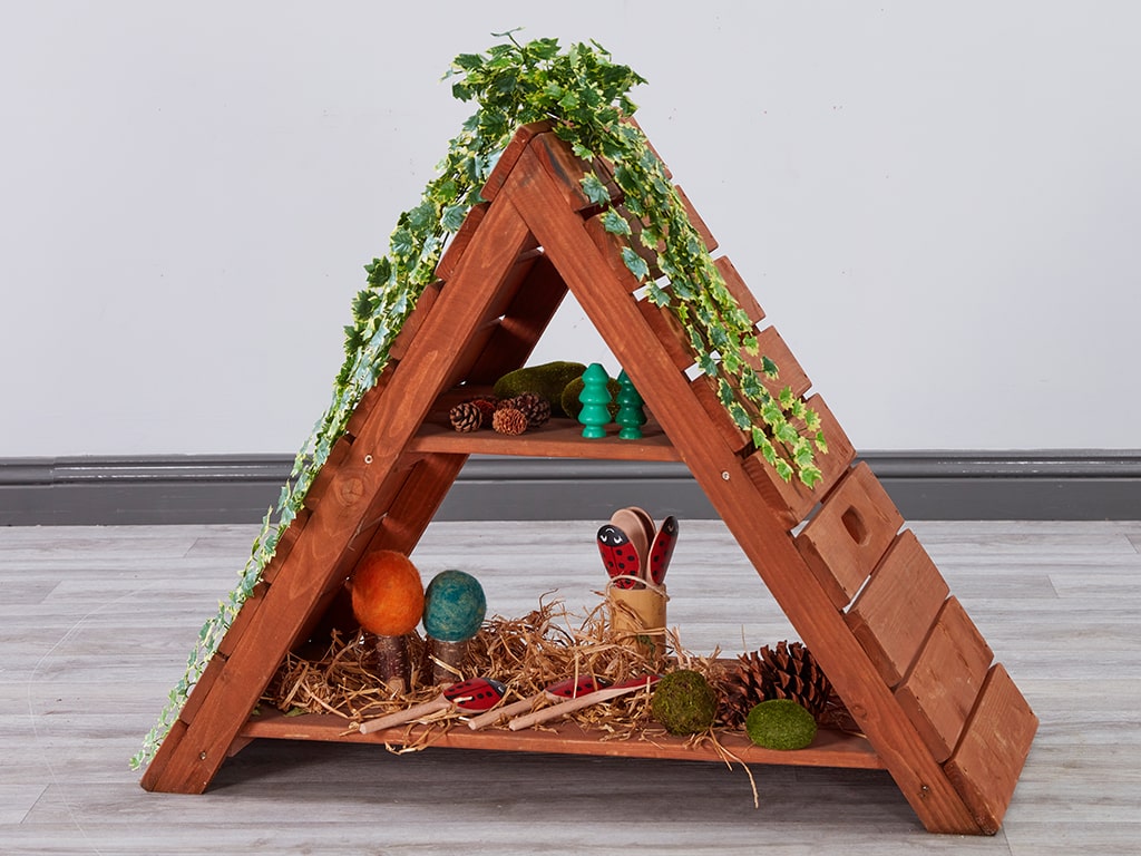 Ένα υπέροχο ξύλινο κουκλόσπιτο με δύο μικρά παραθυράκια, κατάλληλο για εξωτερικό χώρο όπου τα παιδιά μπορούν να προσθέσουν κούκλες και φυσικά υλικά από την ύπαιθρο και να τα εξερευνήσουν. Διαστάσεις: 97 x 45 x 78 εκ.