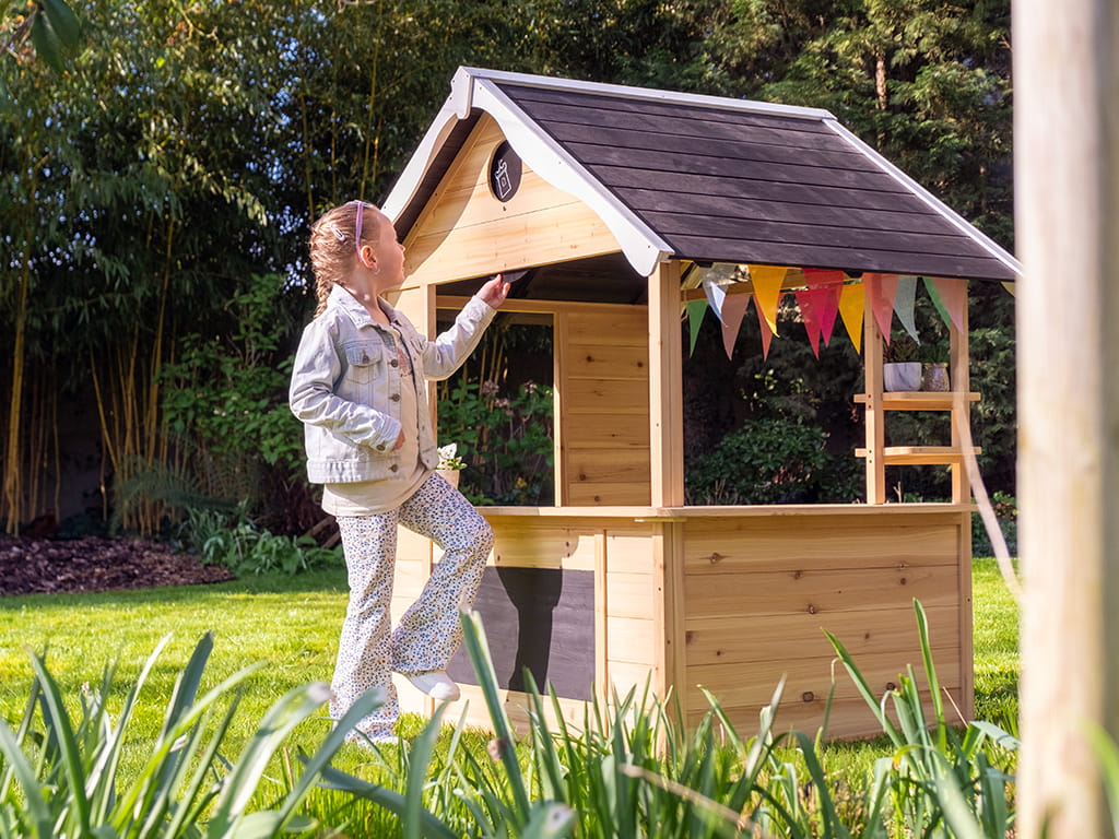 Το ξύλινο μαγαζάκι μετατρέπει τον κήπο σε έναν ασφαλή, διασκεδαστικό και δημιουργικό χώρο για τα παιδιά, όπου η φαντασία τους δεν έχει όρια.