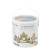 Το σετ περιλαμβάνει 50 ξύλινα μπλοκ πάχους 2,5 εκ., σε 7 παστέλ χρώματα και 8 διαφορετικά σχήματα, προσφέροντας ατελείωτες δυνατότητες κατασκευών. Στη συσκευασία περιλαμβάνεται κουβάς αποθήκευσης με καπάκι και χερούλι, για εύκολη οργάνωση, καθώς και φυλλάδιο με πρότυπα κατασκευών που ενισχύει την έμπνευση και καθοδηγεί τα παιδιά σε δημιουργικές ιδέες.