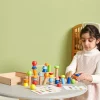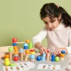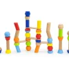 Το ξύλινο οικοδομικό υλικό αποτελεί ένα εκπαιδευτικό και δημιουργικό παιχνίδι για παιδιά από 3 ετών και άνω. Τα μπλοκ ενισχύουν τη φαντασία, τη δημιουργικότητα, τη λογική σκέψη και τον συντονισμό χεριού-ματιού, ενώ παράλληλα διδάσκουν στα παιδιά έννοιες όπως μέγεθος, σχήμα και συνδυασμοί χρωμάτων.
