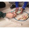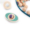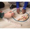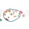 Το ξύλινο παιχνίδι με χάντρες είναι μια διασκεδαστική και ανταγωνιστική δραστηριότητα που ενισχύει τη συνεργασία, τη στρατηγική σκέψη και την οργάνωση. Οι παίκτες τοποθετούν τις χάντρες στα δίχτυα, προσπαθώντας να γεμίσουν το δίχτυ τους με όσο το δυνατόν περισσότερες μπάλες. Στο τέλος του παιχνιδιού, συγκρίνουν τα γεμάτα δίχτυα και το δίχτυ με τις περισσότερες μπάλες κερδίζει. Οι παίκτες χωρίζονται σε ομάδες των δύο και προσπαθούν να τοποθετήσουν τις μπάλες με τη σωστή σειρά χρωμάτων, ακολουθώντας τις μικρές καρτούλες που υποδεικνύουν τη σωστή ακολουθία. Το παιχνίδι απαιτεί προσοχή στη σειρά και ταχύτητα για να καταφέρουν οι παίκτες να τοποθετήσουν όσο το δυνατόν περισσότερες χάντρες σωστά. Αυτό το παιχνίδι ενισχύει τη συνεργασία μεταξύ των παικτών και τους βοηθά να αναπτύξουν δεξιότητες όπως ο συντονισμός χεριού-ματιού, η στρατηγική σκέψη και η ικανότητα να ακολουθούν κανόνες και σχέδια.