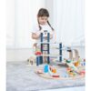 Αυτό το ξύλινο πάρκινγκ είναι ένα διασκεδαστικό και πρακτικό παιχνίδι που προσφέρει στα παιδιά έναν ολόκληρο σταθμό μεταφορών. Φτιαγμένο από φυσικό ξύλο, μπορεί εύκολα να συνδεθεί με άλλα παιχνίδια, όπως δρόμους ή τρένα. Το κάτω μέρος του περιστρέφεται, έτσι το παιδί μπορεί να αλλάζει τη θέση και τη μορφή του πάρκινγκ ανάλογα με το πώς θέλει να παίξει. Είναι ένα δημιουργικό παιχνίδι που ενισχύει τη φαντασία και βοηθά τα παιδιά να μάθουν για τις μετακινήσεις μέσα από ρόλους και σενάρια.