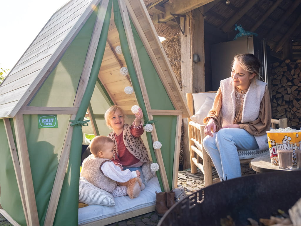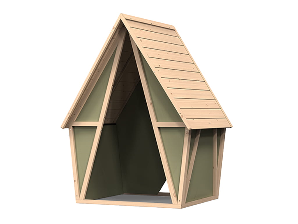 Με αυτό το ξύλινο σπιτάκι – σκηνή, ο κήπος σας γίνεται χώρος φανταστικών περιπετειών και ζεστής camping ατμόσφαιρας για τα παιδιά, ενώ εσωτερικά μπορεί να μετατραπεί σε ήσυχη γωνιά παιχνιδιού, ανάγνωσης ή χαλάρωσης.