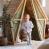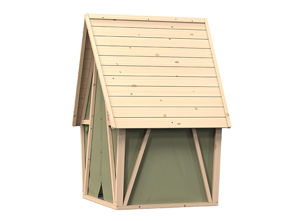 Το ξύλινο σπιτάκι – σκηνή είναι ένα μοναδικό παιχνίδι που συνδυάζει ζεστασιά και περιπέτεια. Ο ξύλινος σκελετός προσφέρει σταθερότητα και ασφάλεια όπως ένα κλασικό σπιτάκι, ενώ ο ανθεκτικός πράσινος καμβάς δημιουργεί μια άνετη και φιλόξενη ατμόσφαιρα. Ιδανικό για διάβασμα ή για φανταστικές περιπέτειες στη φύση. Η μυτερή σκεπή προσθέτει παιχνιδιάρικο σχεδιασμό, ενώ η φυσική εμφάνιση το καθιστά όμορφη προσθήκη σε κάθε κήπο.