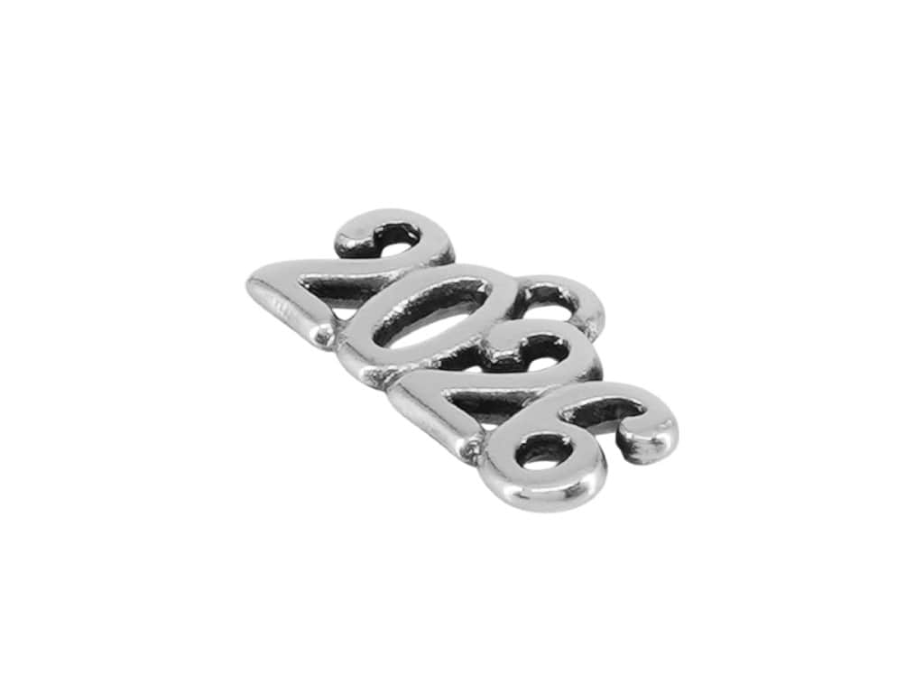 Ζαμάκ μεταλλικό, σε ασημί χρώμα με χρονολογία. Μήκος: 1,8 εκ.